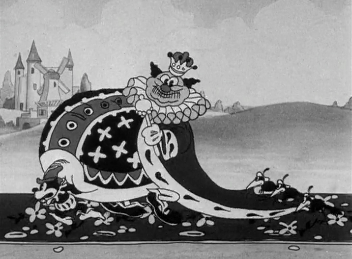 At last they have made a cartoon in this Paul Terry-Toon that gets away from the routine of the musical stereotyped stuff that has been dished up so monotonously for months. Here there is a clever idea worked out with a lot of animated technique that in spots is beautiful and artistic. The Spider is a terrifying creature who invades the castle, imprisons the king, and disguises himself in his clothes so he can pursue his designs upon the king's fair daughter. The cartoon conceit is handled with fine imagination and ranks 'way above the average current cartoon.