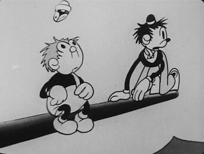 Waves crash over Tom and Jerry on their wrecked ship in “Polar Pals” (1932). All kinds of sea creatures that began lodges in their clothes and bodies escape. Whoever animated the scene at Van Beuren didn’t use cycles and each drawing takes up a single frame.